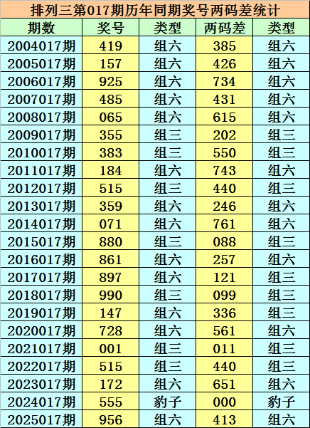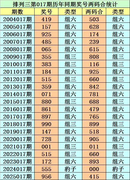 摆列三从2004年开奖于今已开出7491期奖号了,其中第017期历史同时奖号出现22次,积年第017期分袂开出号码:419、157、925、485、065、355、383、184、515、359、071、880、861、897、990、147、728、001、515、172、555、956。